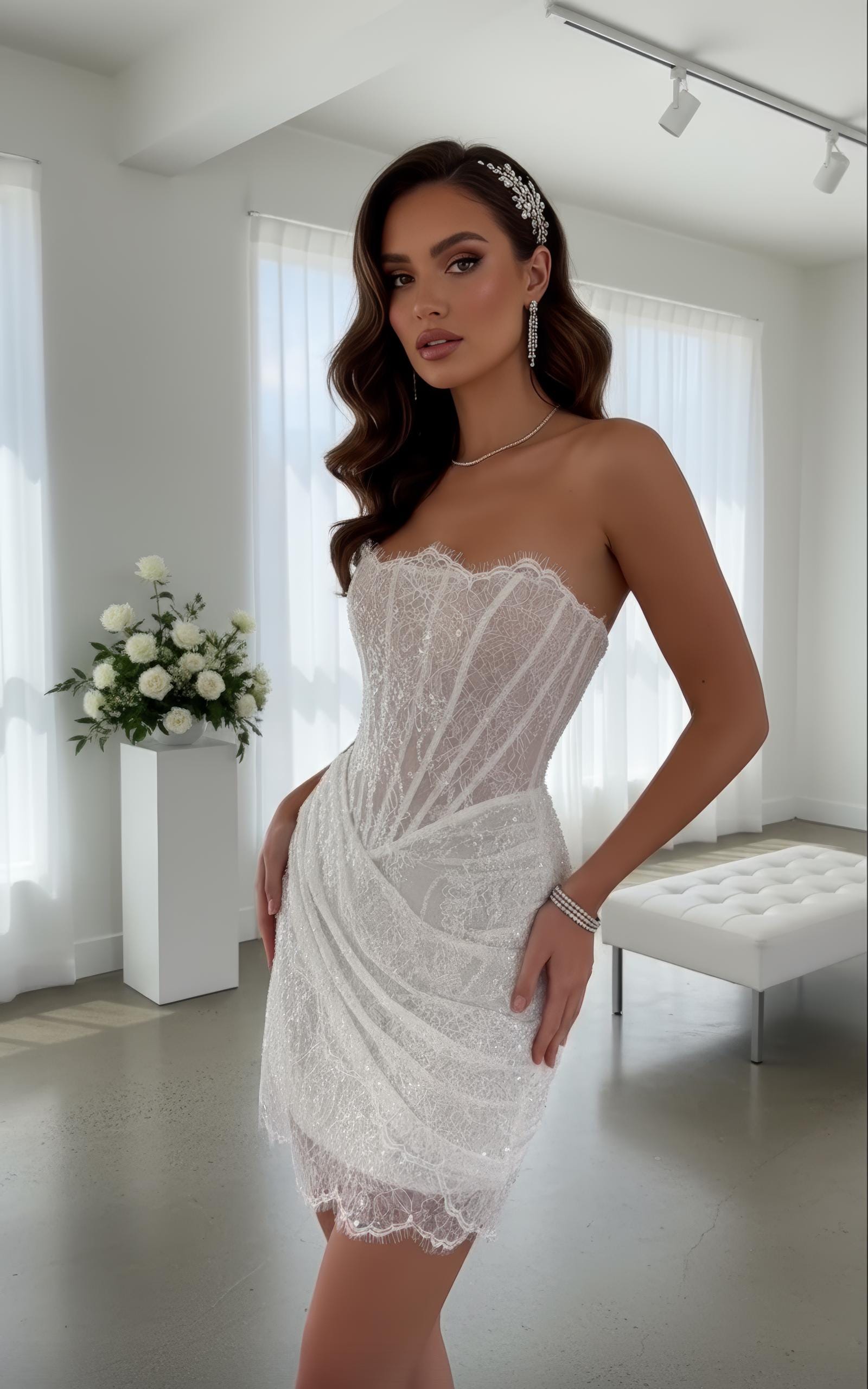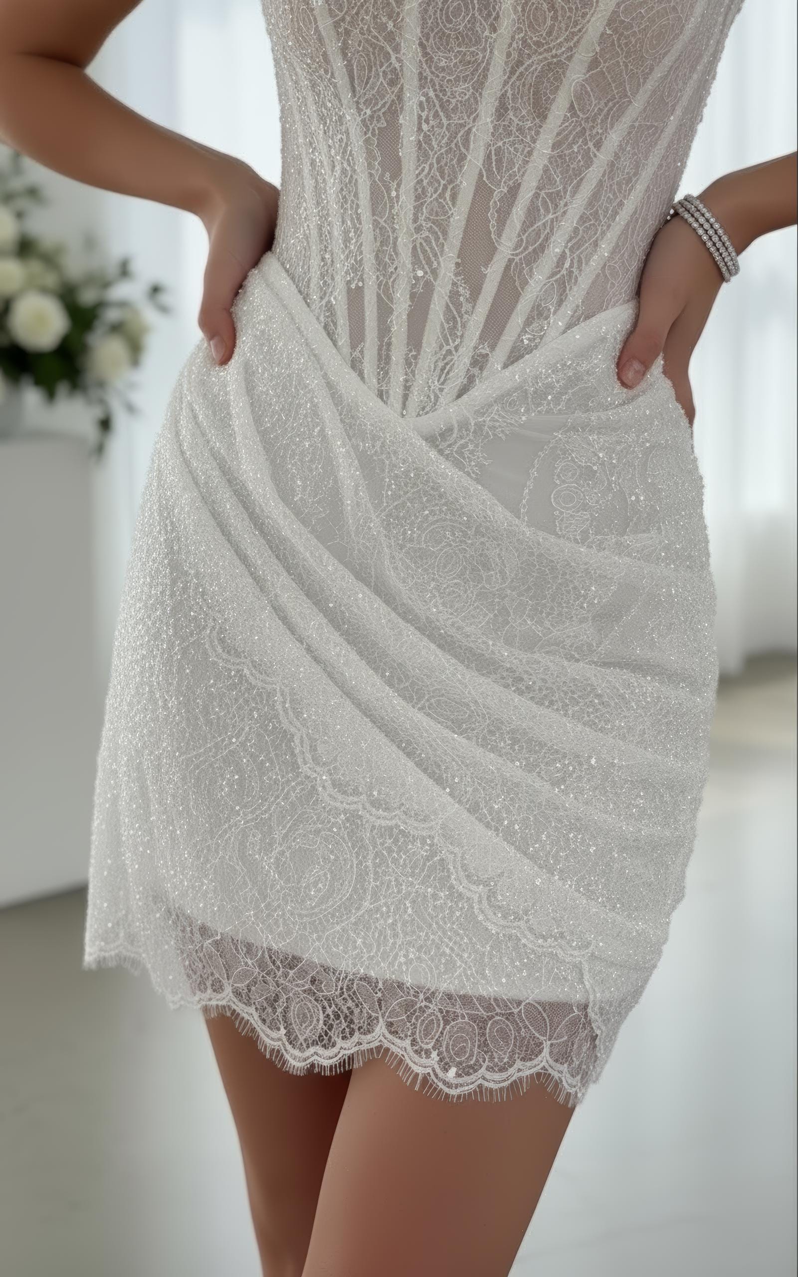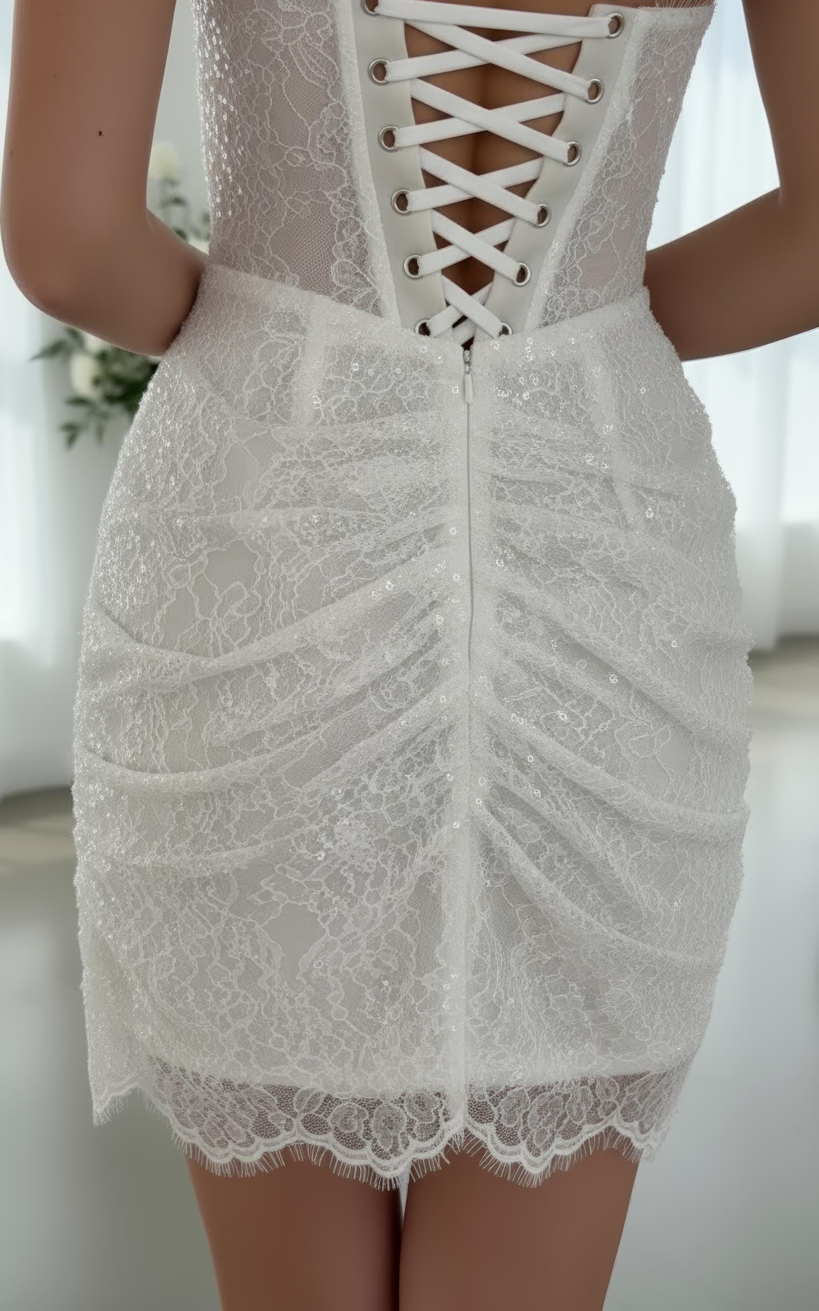 Handmade Short Lace Corset Wedding Dress Modern Bridal